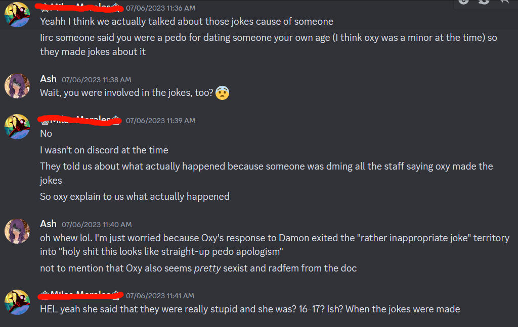 Scotia argued that any adult over 25 who would be interested in moderating an all-ages Wings of Fire server is "fucking weird."